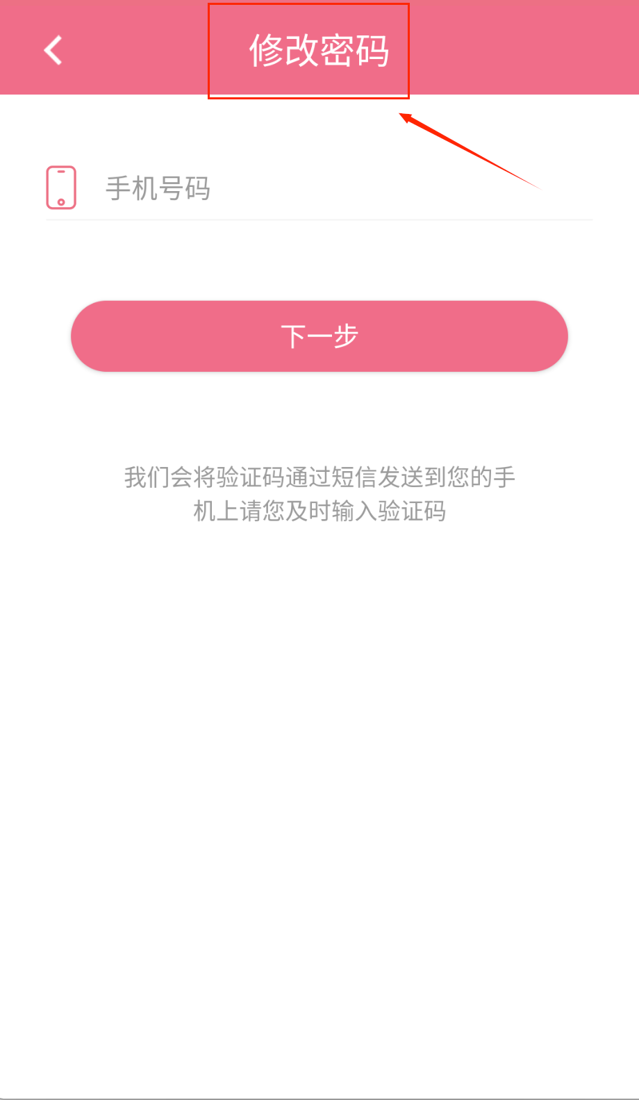 3、改密码时点粉色的下一步按钮,系统发短信验证码到你填的手机号上,收到后输入新密码确认两次就能生效哦。