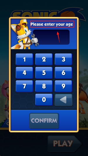 3、按提示输入你的年龄,点击“CONFIRM”后再按“PLAY”即可进入游戏。