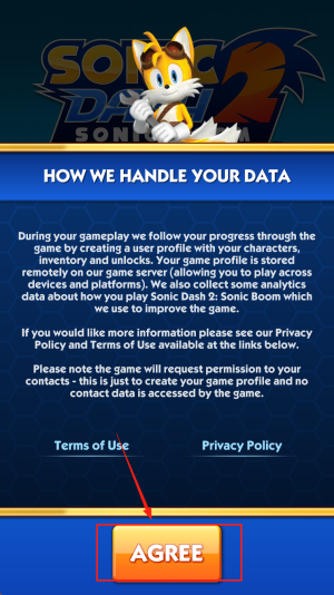 4、阅读数据使用说明,点击“AGREE”后游戏将为你创建云存档并开始跑酷。