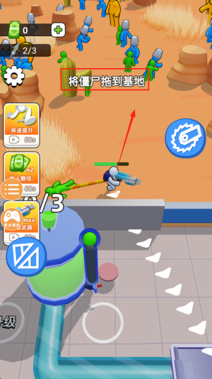2、按提示将僵尸拖到基地,完成2/3部署并触发移速提升。