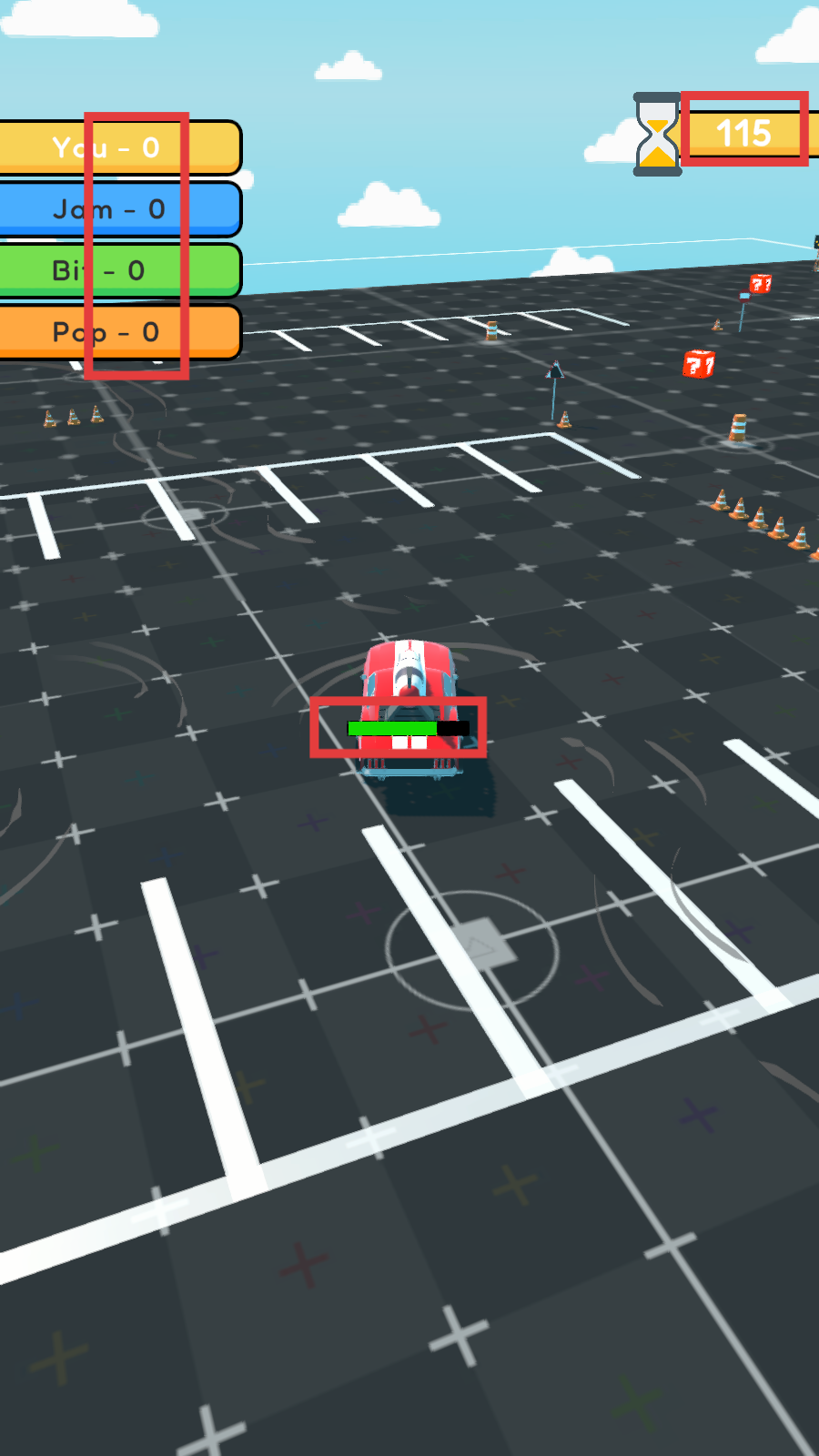 2、行驶中,优先获取问号方块,提升车辆能力。