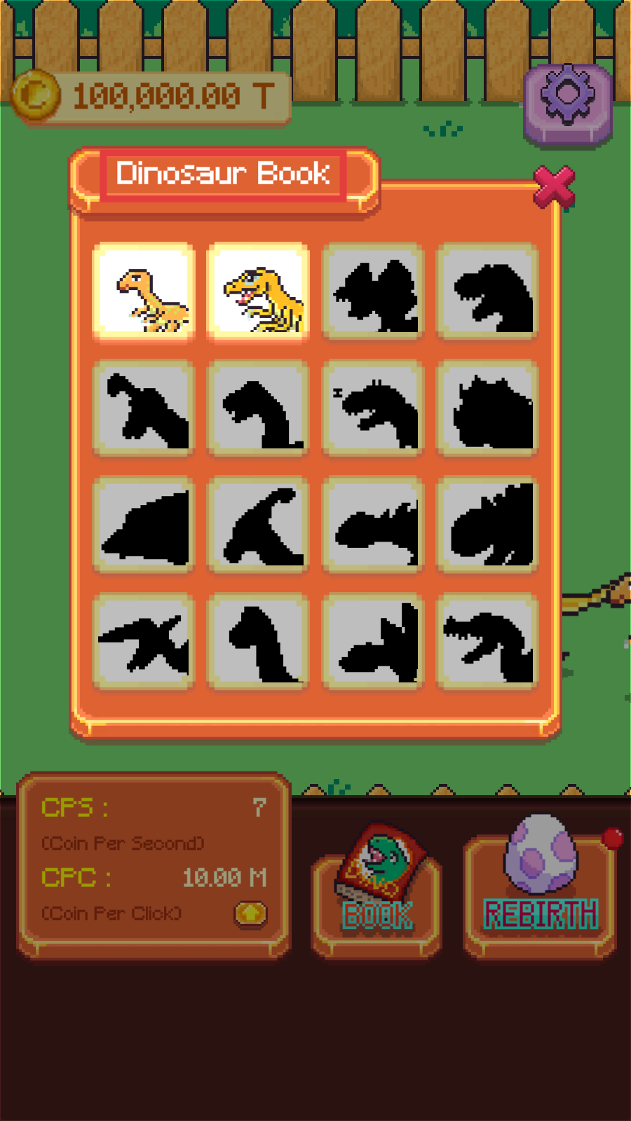 3、点开【Dinosaur-Book】,查看已解锁恐龙,规划解锁新恐龙的金币储备。
