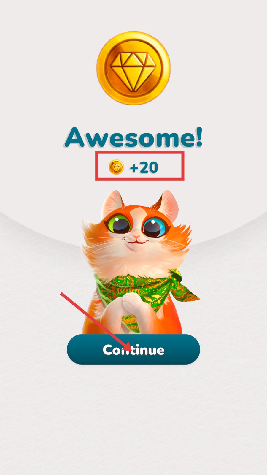 4、通关后点【Continue】领+20金币,积累资源挑战更高关卡。