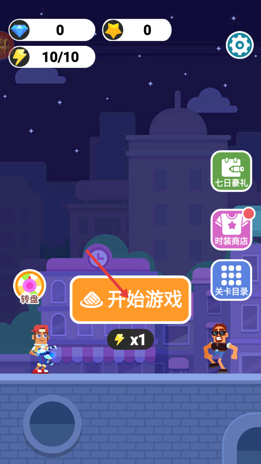 1、确认体力【10/10】充足,点击【开始游戏】进入第1关。