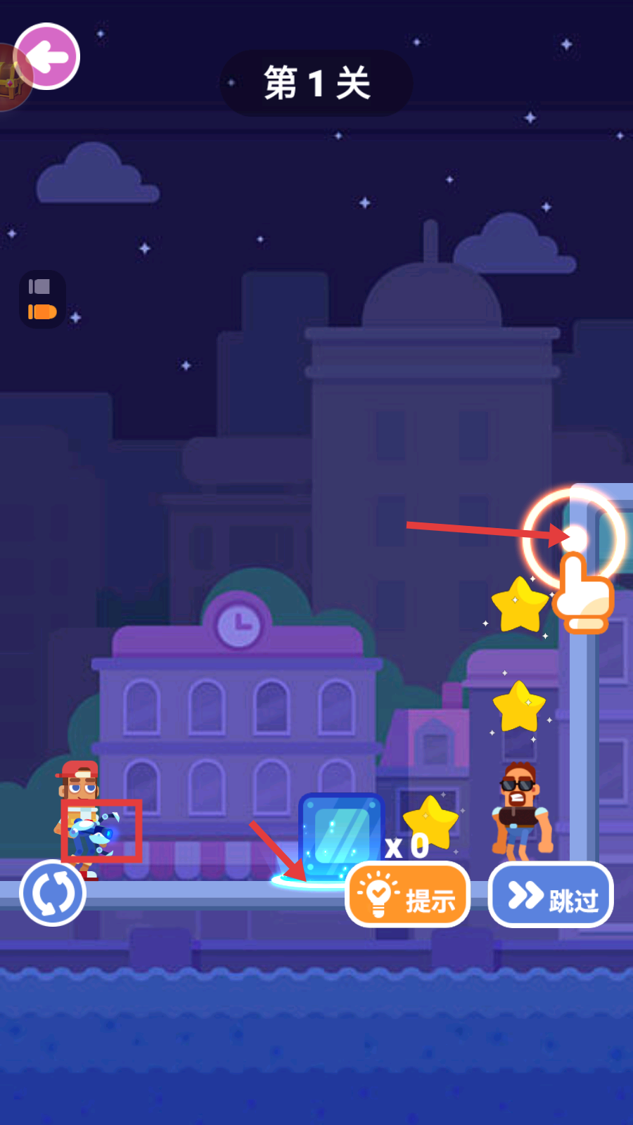 3、利用蓝色方块,收集星星,砸中敌人即可通关。