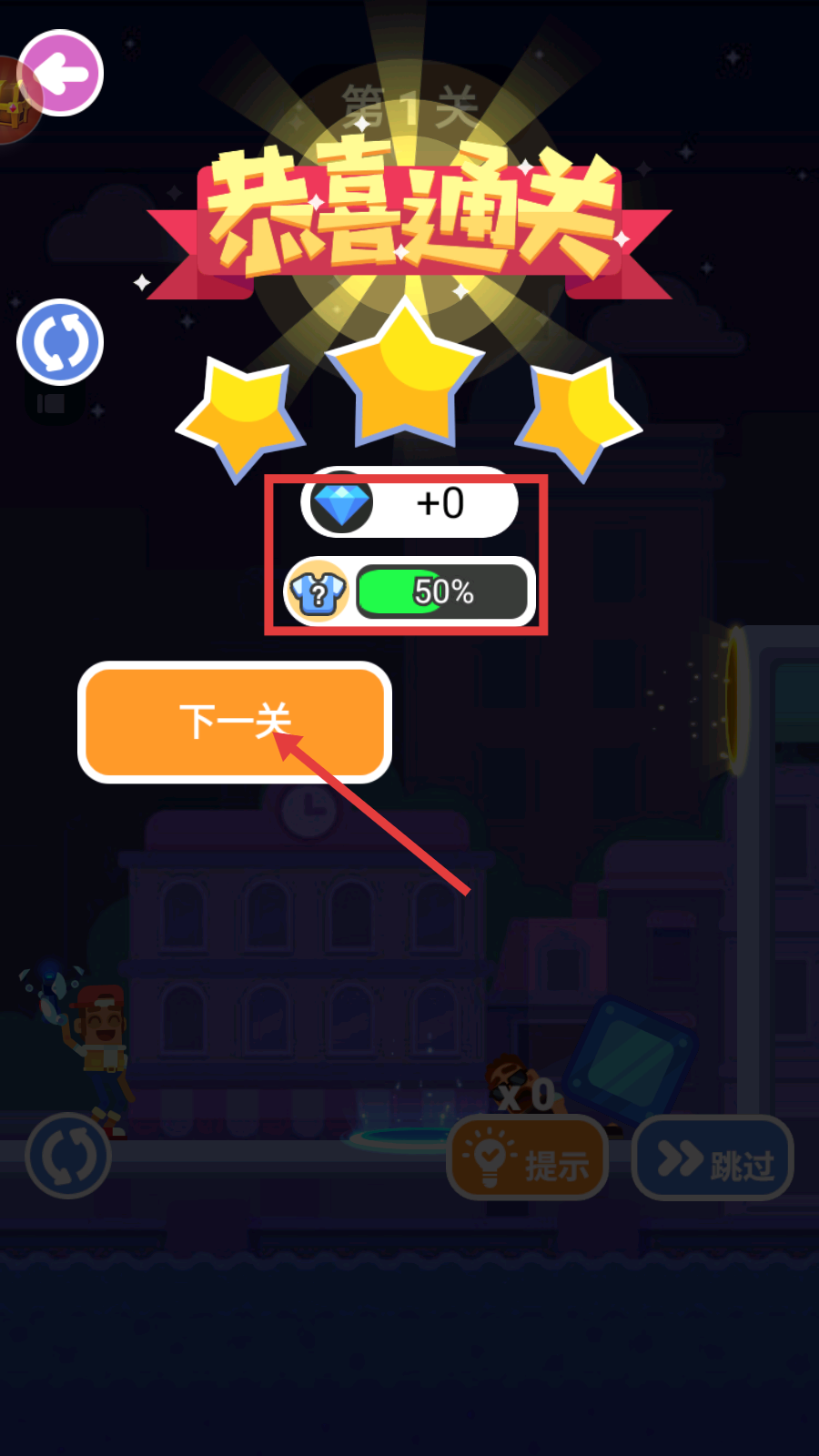 4、通关后点击【下一关】,积累进度解锁时装等奖励。