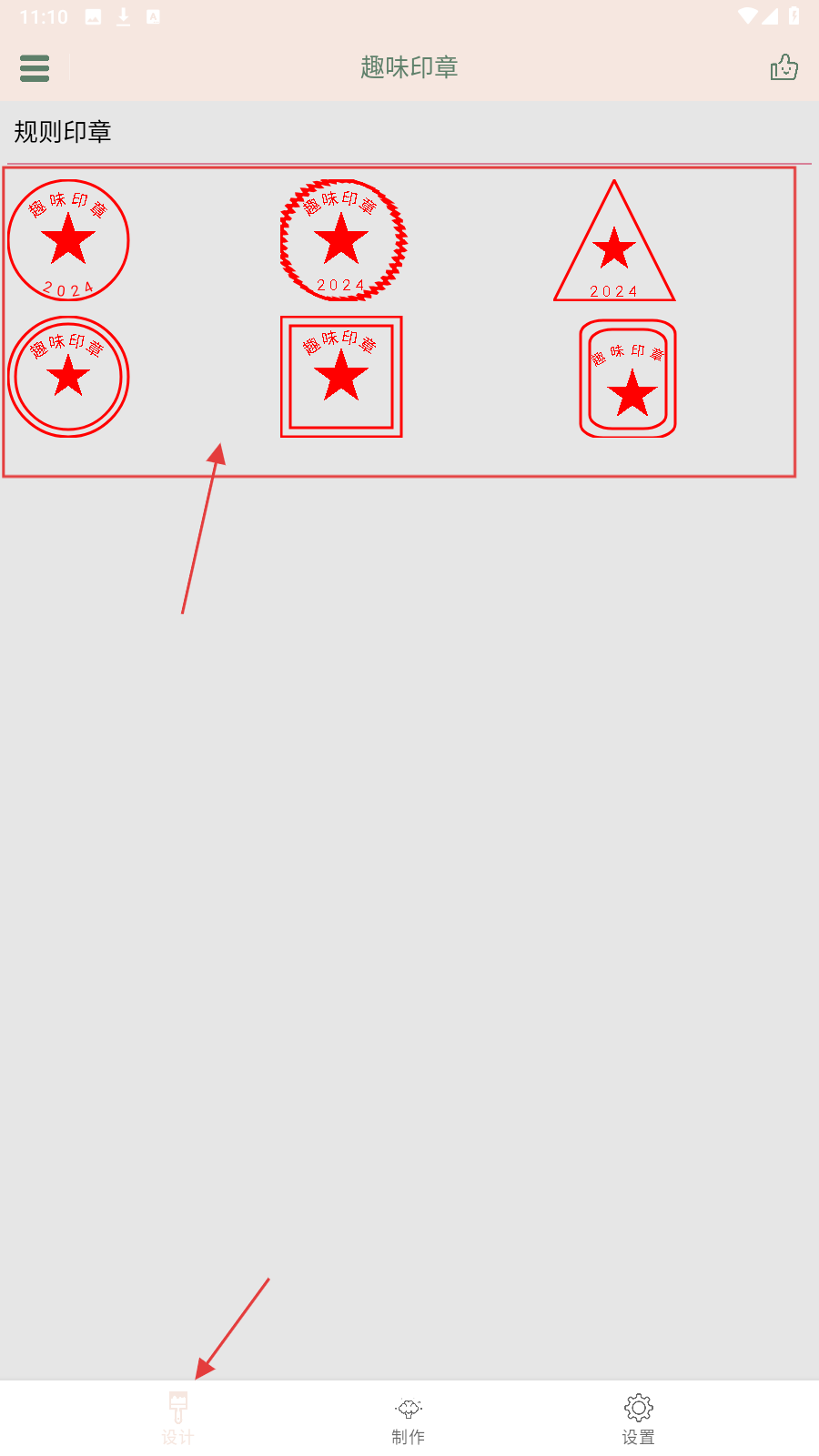 1、打开应用,在【设计】页面,选择喜欢的印章图案并点击。