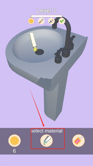 4、最后,进行游戏操作。根据游戏提示,将选中的材料放入水槽中,并使用工具完成关卡挑战。