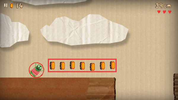 2、角色前进的路上,尽量多收集金币,提高游戏分数。