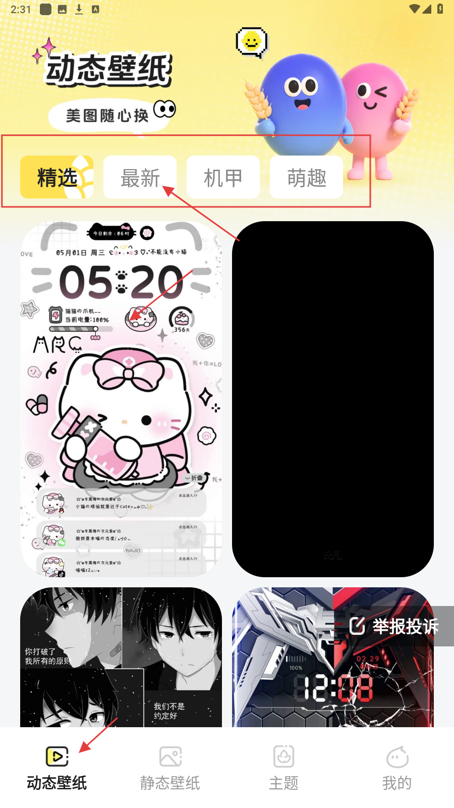 1、打开应用后,在动态壁纸页面选择喜欢的壁纸分类,找到感兴趣的动态壁纸,点击进入壁纸详情页面。