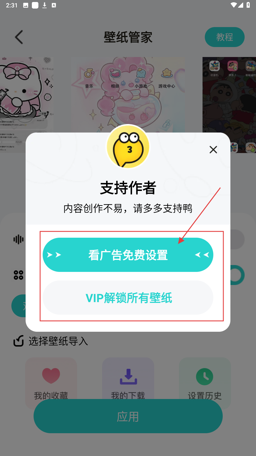 4、若想免费设置壁纸,可点击【看广告免费设置】按钮观看广告后设置壁纸。