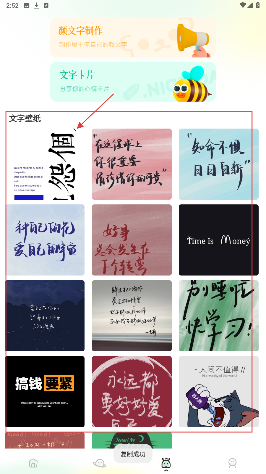 2、进入【文字壁纸】板块,众多精美壁纸任你挑选,点击喜欢的壁纸。