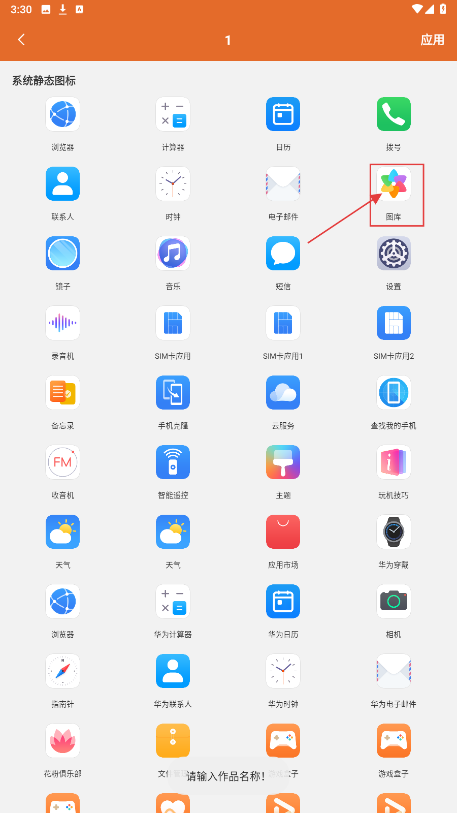 2、选要美化的应用(如【图库】),进入图标替换流程,精准定制。