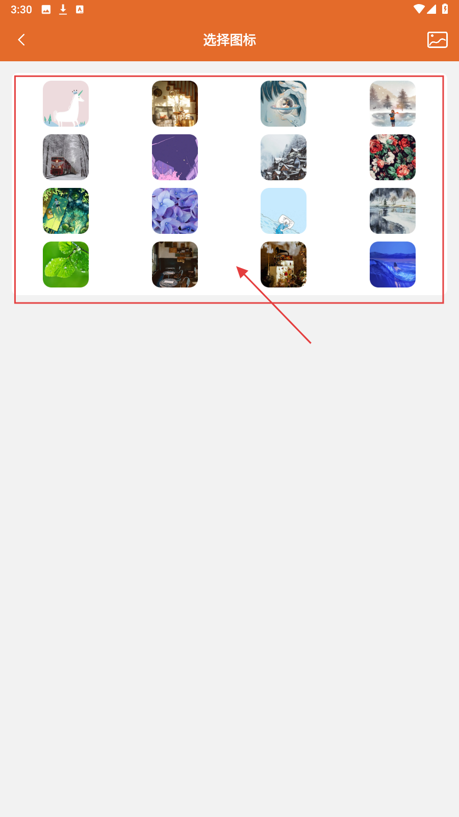3、到【选择图标】页,从多样风格图标里挑心仪的,更换应用外观。