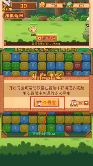 3、然后,进行寻宝活动。在冒险过程中,点击“开启寻宝”按钮,开始寻宝活动,获取额外奖励。