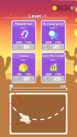 1、首先,在游戏开始前,你可以点击不同的技能图标来升级它们,以提高游戏过程中的金币收集效率。