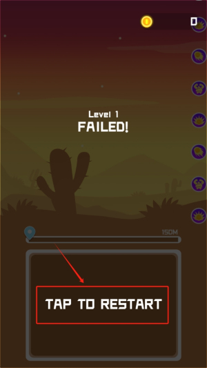 4、最后,重新开始游戏。如果游戏失败,点击“TAP TO RESTART”按钮重新开始当前关卡。