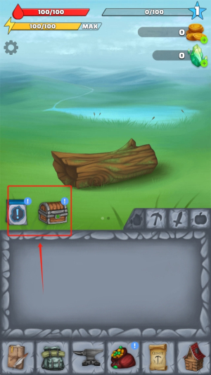 1、指尖点击屏幕开始收集资源,先开采木材和石块,熟悉点击节奏,获取基础道具,初步尝试生存,开启游戏之旅。