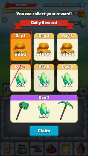 2、接着,点击“Daily Reward”查看并领取每日登录奖励,这将帮助你更快地积累资源。