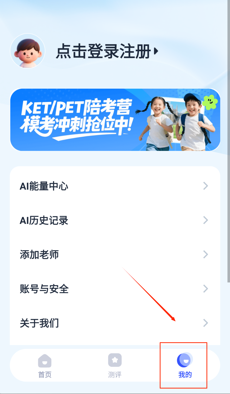 1、打开APP完成账号注册,选择适合的剑桥考试级别,设置学习目标哦。