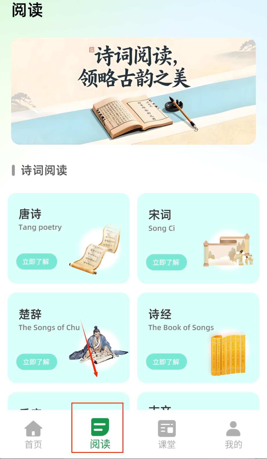 1、在APP首页可浏览精选古诗文和文言文,每篇配有详细注释、白话译文和名家赏析,帮助理解传统文化精髓哦。