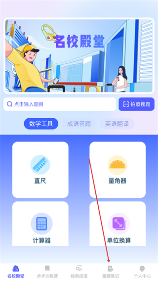 1、打开步步学成应用,点击底部导航栏的错题笔记。