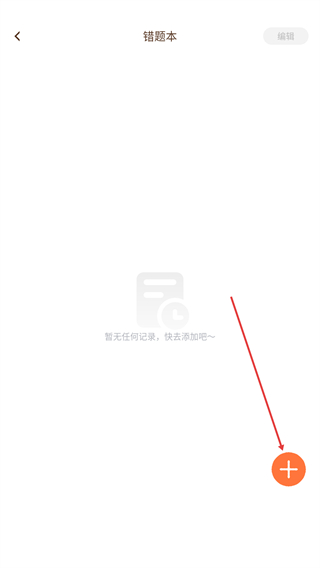 3、进入错题本页面后,点击右下角的加号按钮。
