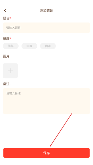 4、填写题目选择难度补充信息,点击保存完成添加。