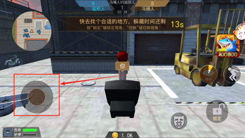 4、躲藏倒计时13秒内,迅速移动角色寻找掩体,准备迎接首局对战。