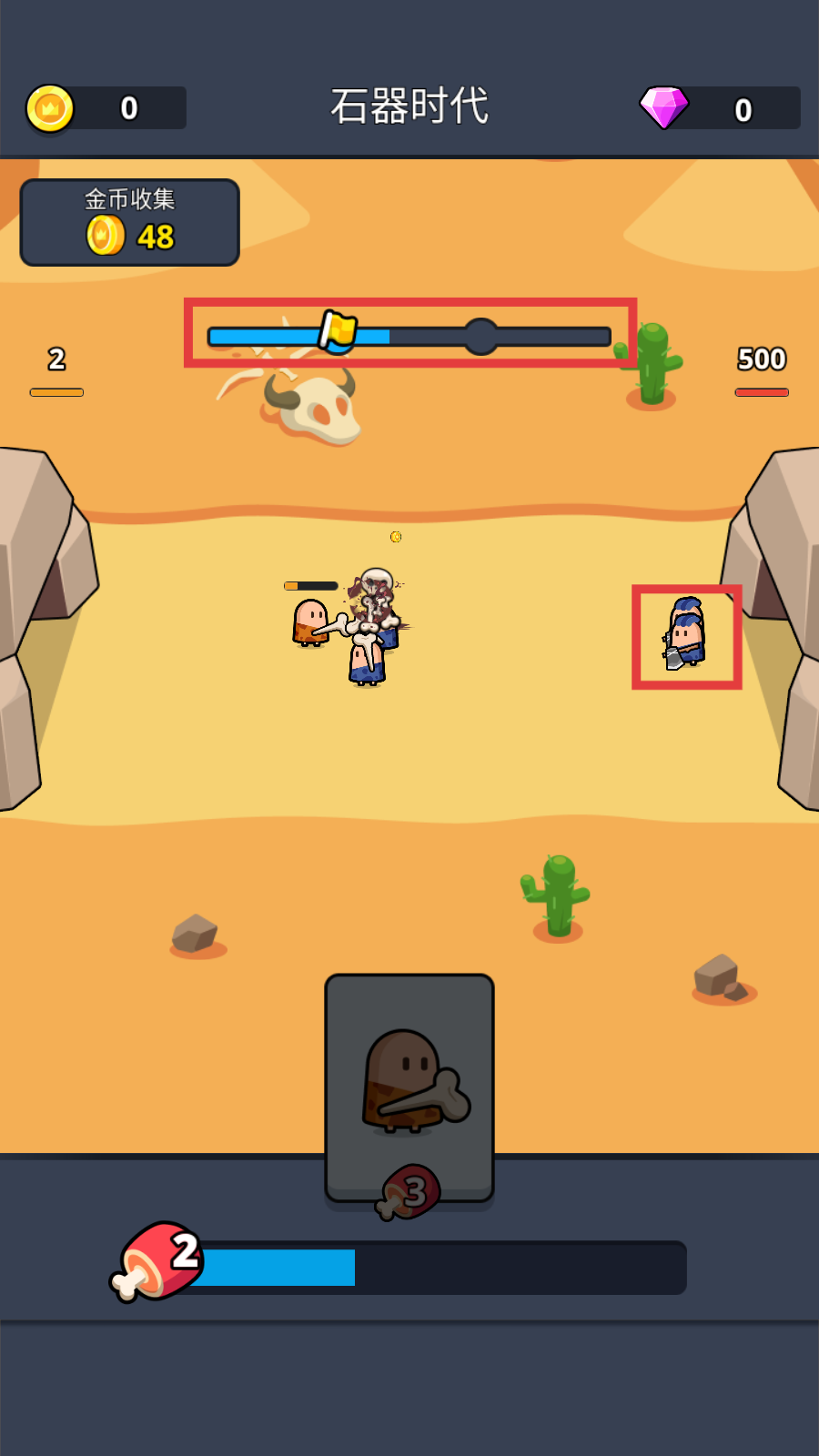 1、资源调配操作:收集足够食物激活兵种卡片,点击召唤不同时期战斗单位加入战场。