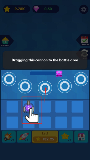2、接着,合并大炮。将两个相同的大炮拖动到一起,合并成更高级别的大炮。