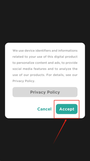 1、首先,接受隐私政策。点击“Accept”按钮,同意应用的隐私政策,以便开始游戏。