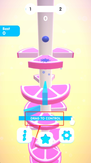 2、接着,开始游戏。点击屏幕下方的“DRAG TO CONTROL”区域,开始控制旋转的柱子。