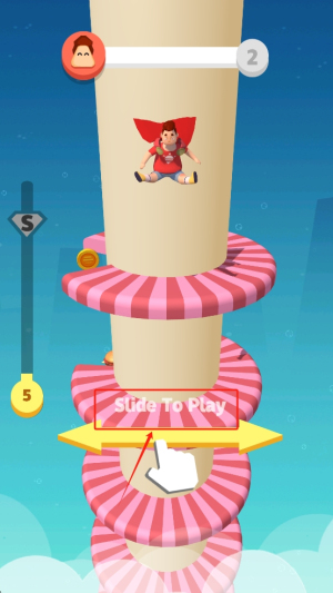 2、接着,在游戏中,通过左右滑动屏幕来控制角色在滑梯上的移动,收集金币。