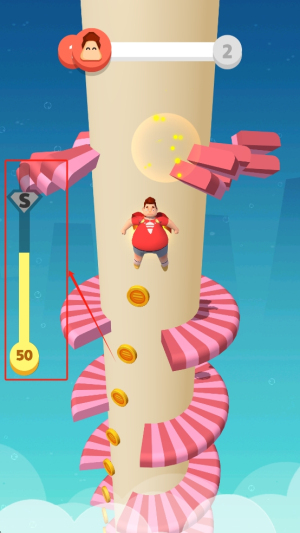 1、作为好玩的休闲闯关游戏,闯关过程轻松有趣,胖子跳跃的憨态与闯关的成就感结合,闲暇时玩几局很惬意,吸引力较强。