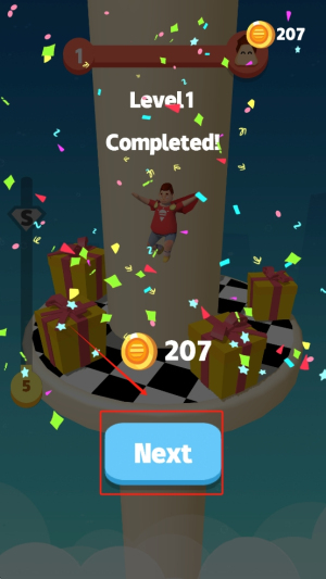 4、最后,当到达滑梯底部,收集足够金币后,点击“Next”按钮,完成当前关卡并进入下一关。
