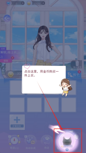2、购买上衣。在设计界面中,点击上衣图标,使用金币购买一件上衣。