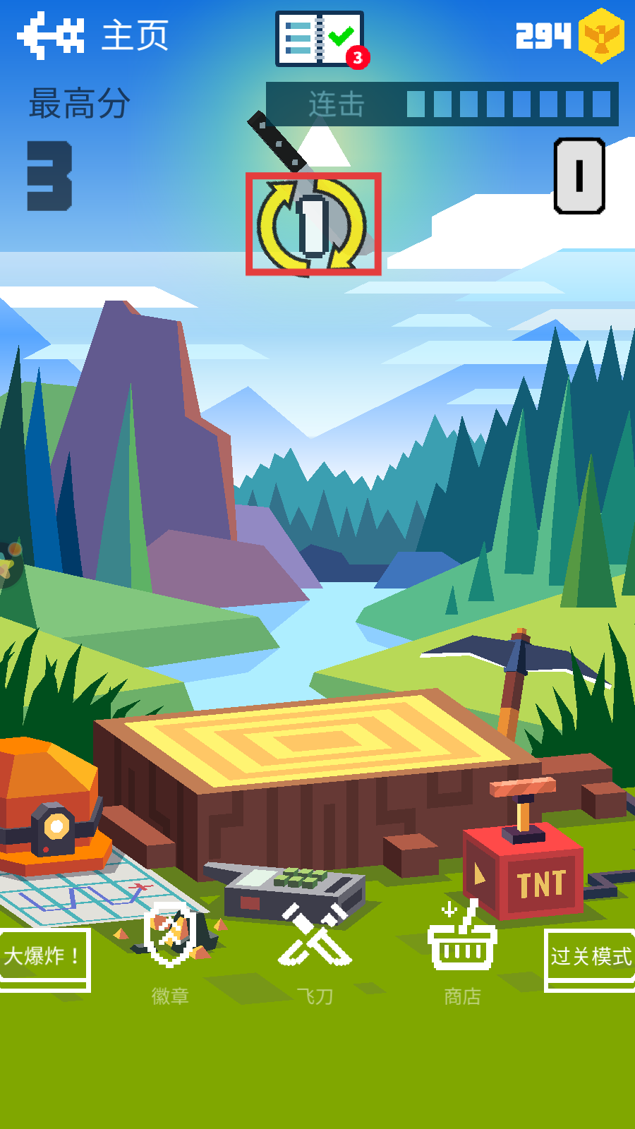 2、通过滑动屏幕,操纵小刀向上甩出,小刀转了几圈就能获得多少连击数,连击数和金币获得数是对等的。
