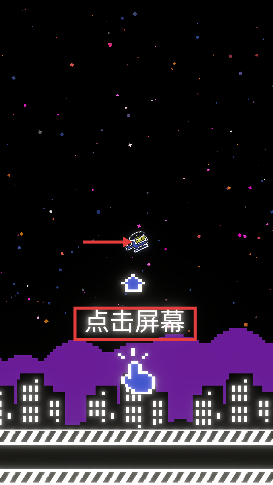 2、根据提示【点击屏幕】来控制角色的飞行,躲避障碍物。