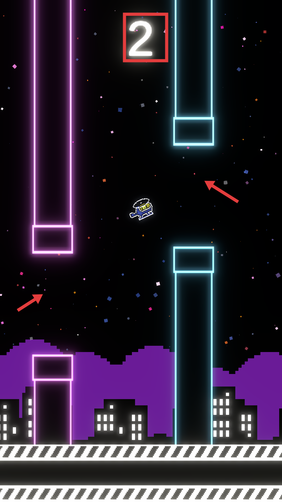 3、场景中会出现不同颜色的霓虹管道,要巧妙地在管道之间穿梭,避免碰撞。