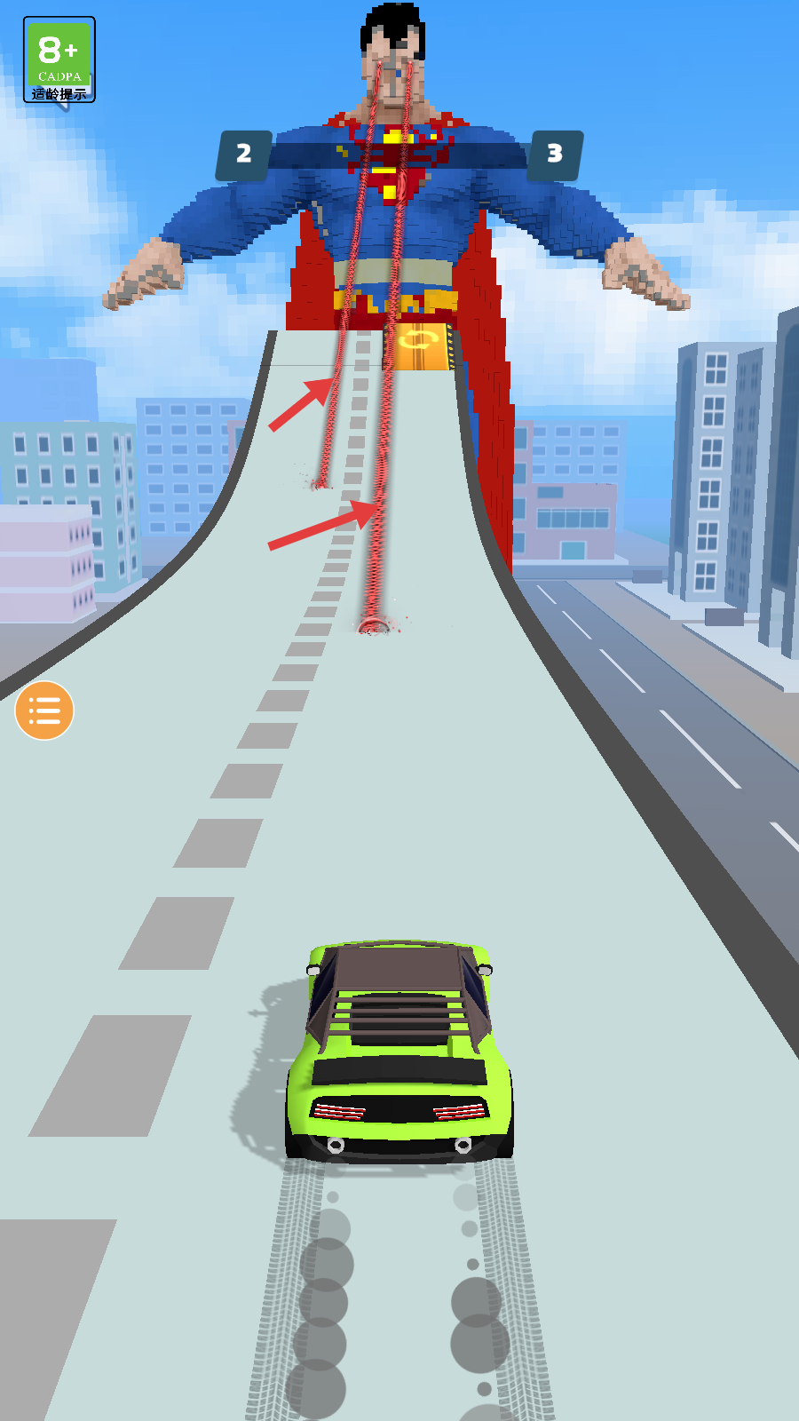 3、接近巨型角色时,瞄准其破损部位冲撞,可触发高额伤害,同时利用赛道上的加速带提升速度。