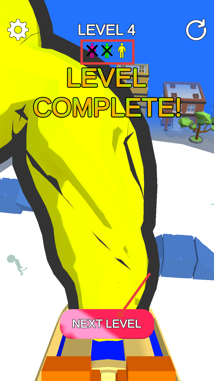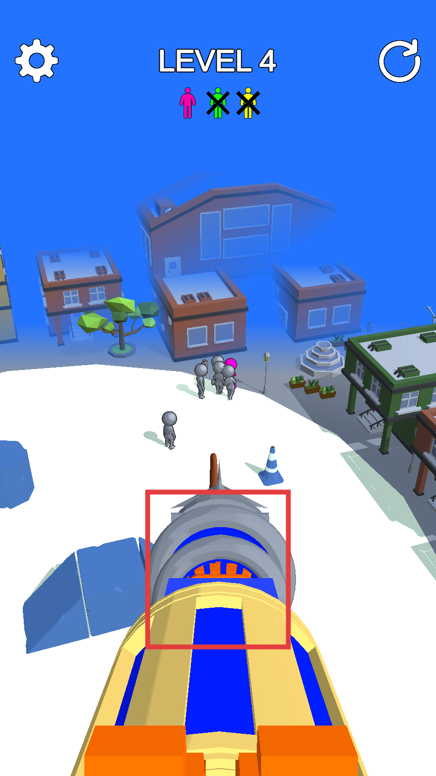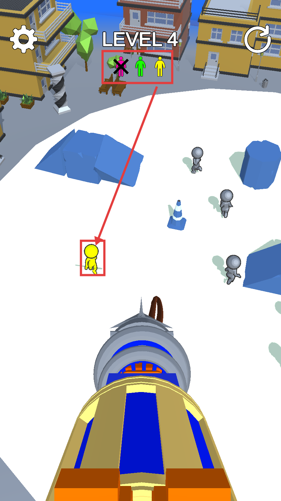 1、进入关卡后,先观察上方颜色提示,锁定目标颜色小人,如黄色小人,瞄准发射。
