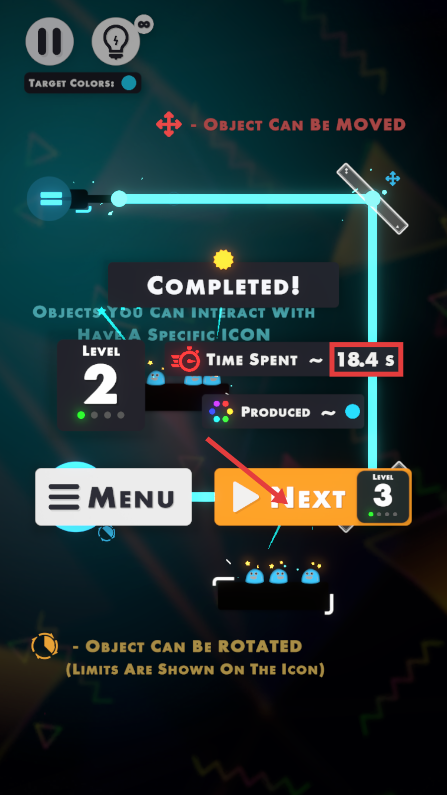 2、按照提示,可以移动方块状镜子,为光线传播创造路径,使光线连接下方【蓝色发光源】和上方【灰色接收装置】。