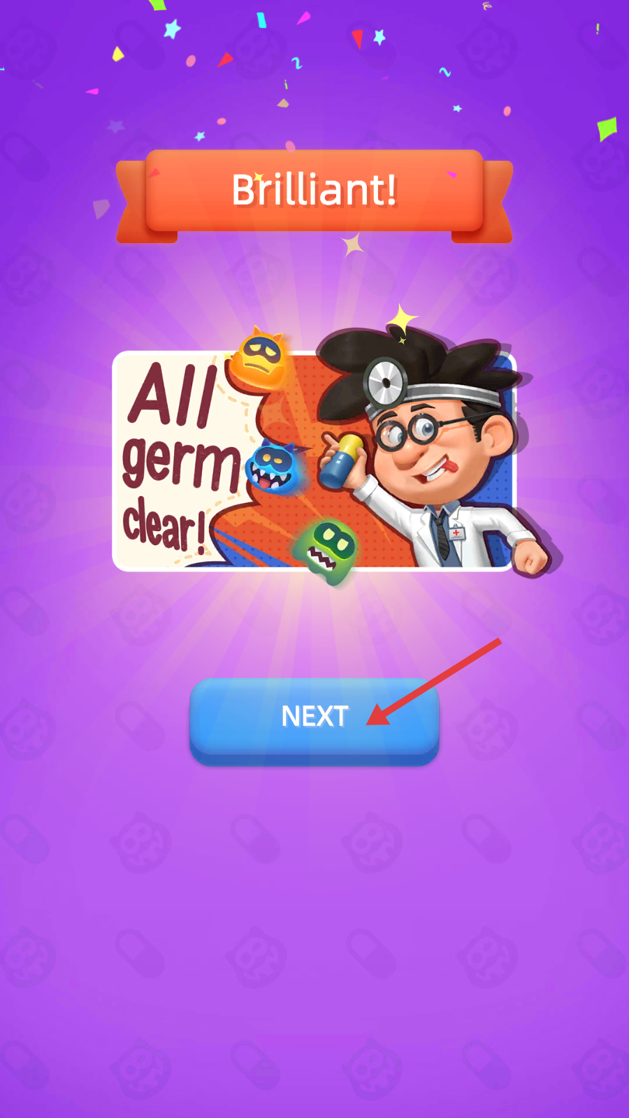 3、消除细菌时,注意药丸的颜色,精准投放相同颜色的药丸消灭细菌,只要上方细菌全消灭,即可通关,剩下药丸也不会有什么影响。