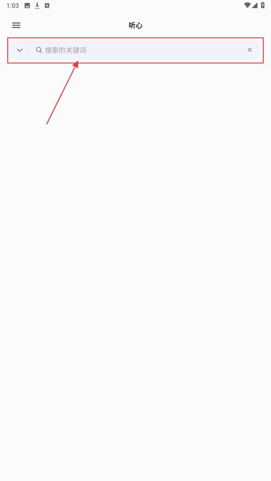 1、打开应用,点击顶部搜索框,输入想听内容(如歌手、歌名)。