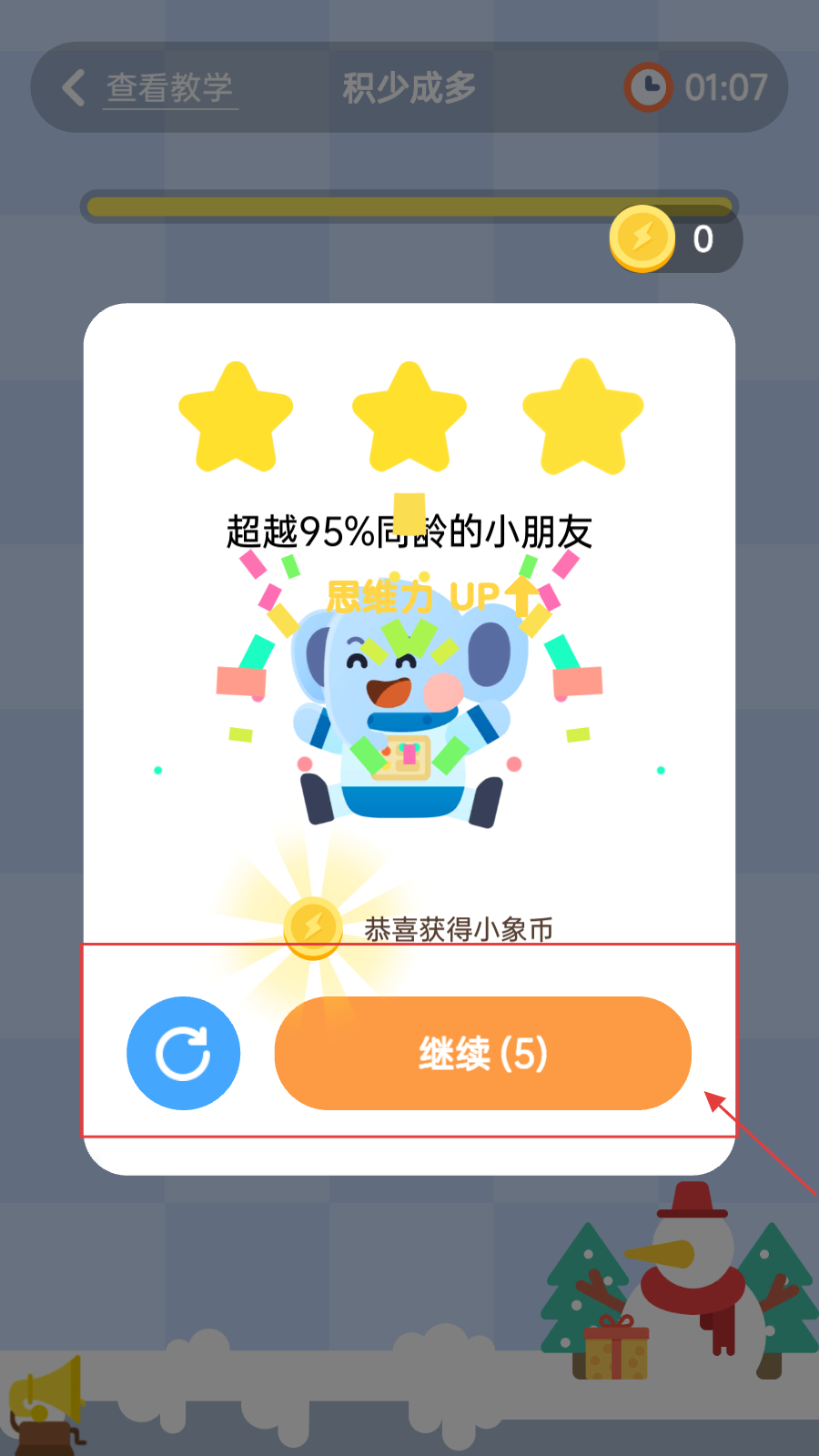4、完成训练后,若获三星评价,点击【继续】可开启下一轮挑战。
