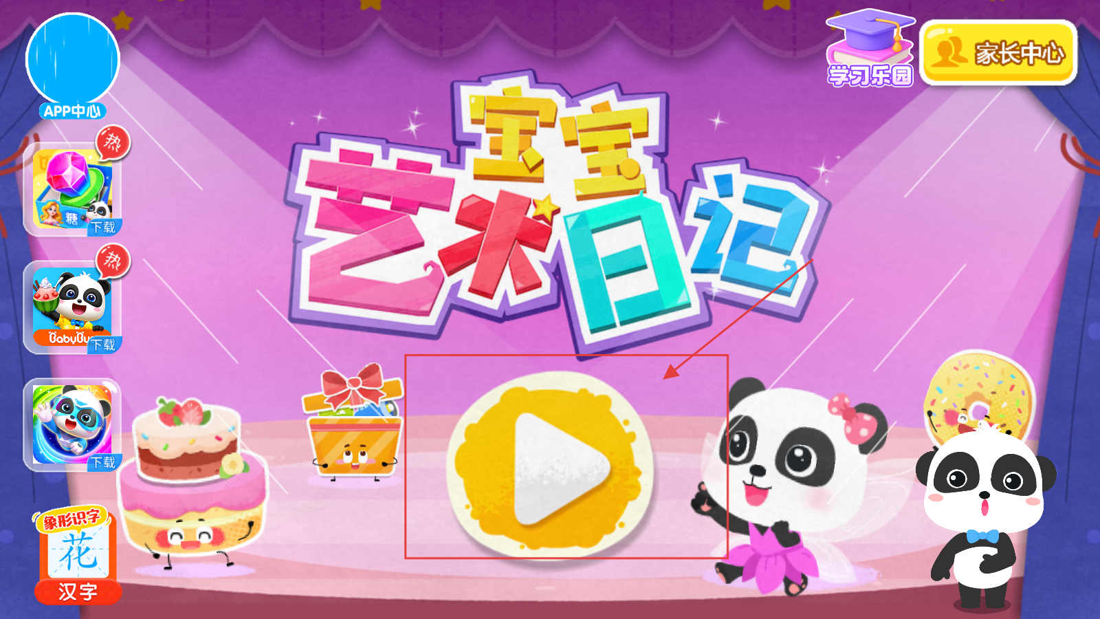1、进入应用点黄色播放键,开启【宝宝艺术日记】的艺术之旅。