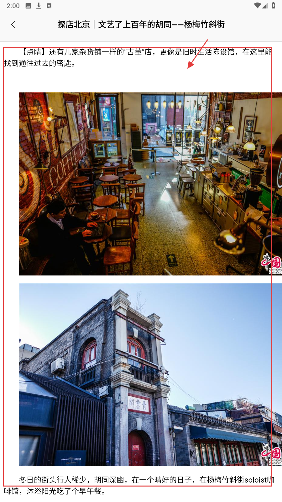2、点进【杨梅竹斜街】详情,看店铺、建筑图,感受文艺氛围与旧时韵味。