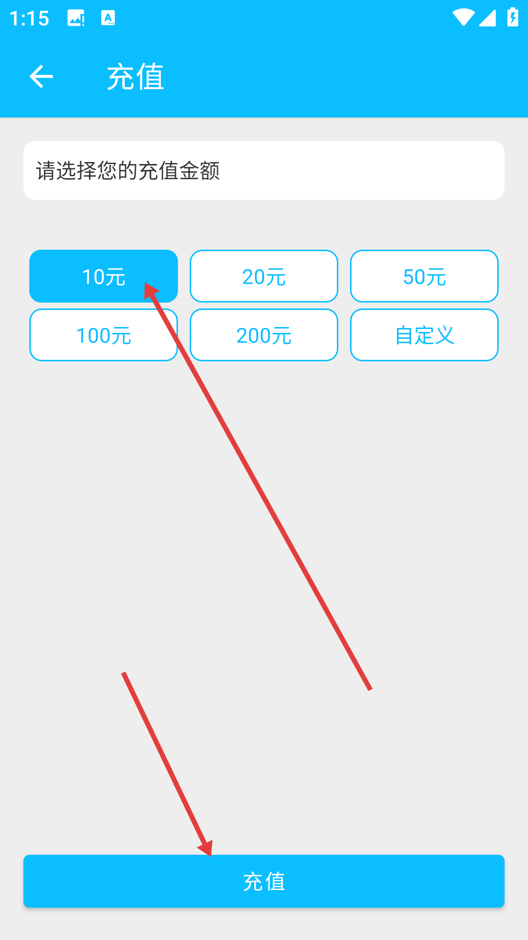3、充值页选10元金额,点击【充值】按钮,跳转支付环节。