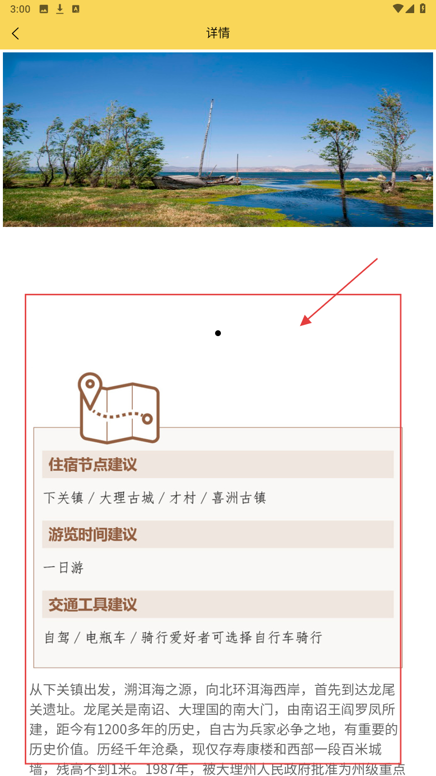 3、参考【住宿节点建议】选下关镇等住处,按【游览时间建议】安排一日游行程。